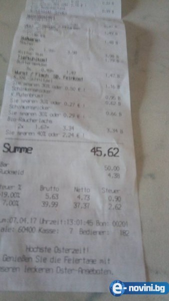 Г-н Борисов сподели в социалната мрежа касова бележка от немски супермаркет, показваща стойността на стоките там.